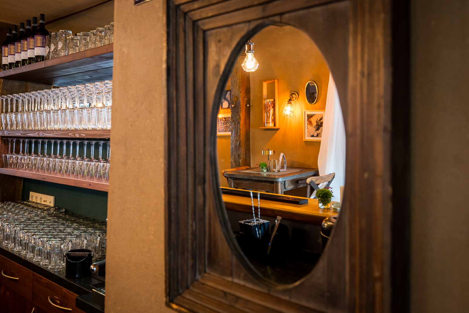Nachdem du den Eingangsbereich passiert hast, befindest du dich direkt im Bar-Bereich. Hier bekommen deine Gäste gerne einen Aperitif gereicht und können von hier in den Abend starten. Hier finden 50 Personen Platz, gerade bei schlechtem Wetter bringt dieser Raum alles mit, um sich wohlzufühlen.