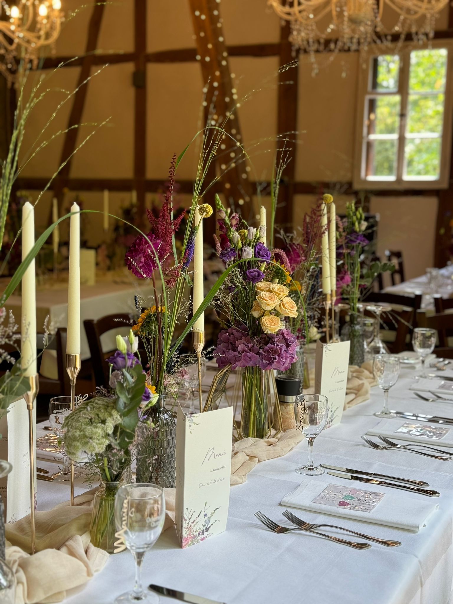 - Stilvolle Tischdekoration, Willkommensschilder, Tischläufer, Kerzenständer uvm.